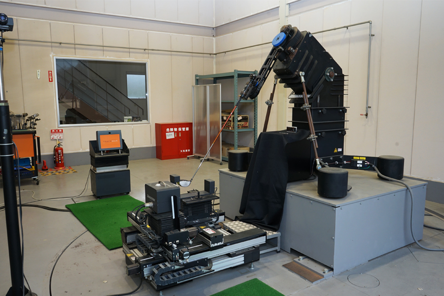 実際にクラブを振るロボットもありました。このロボットは、ディンプルが半分だけついたボールや、ディンプルのまったくないボールを打つなどし、ディンプルの役目などを教えてくれます