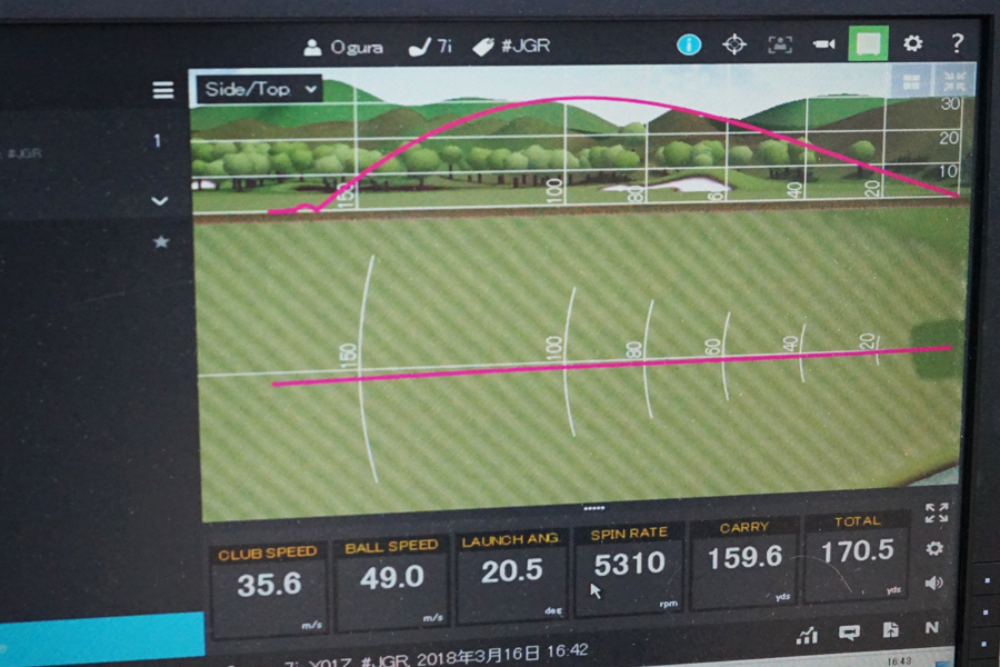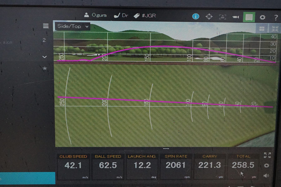 JGRのデータ。2061rpmと少ないスピン量で飛ばせました