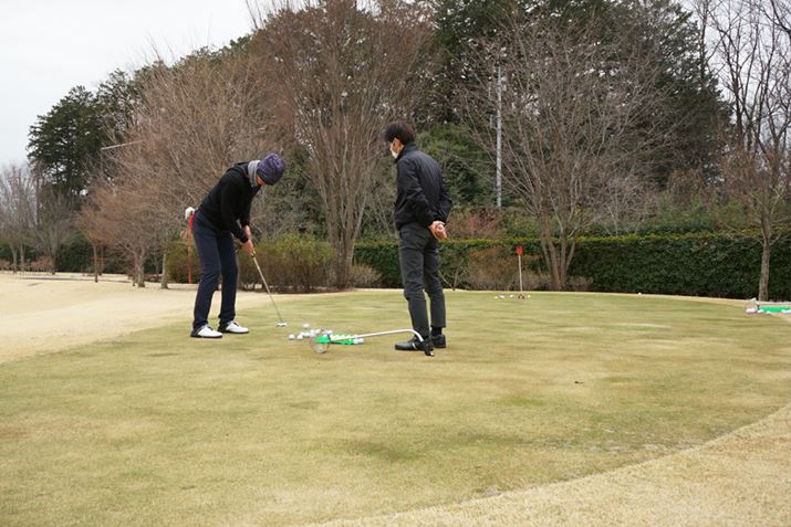 ドライバーやアイアンなどフルショットでデータを取りながらやるゾーン、アプローチにパターを含めたグリーン周りのゾーン、そしてフリーにボールが打てるゾーンに分かれて行っていました。実際の芝の上から打てるので、より実戦的なフィーリングを確認することができます