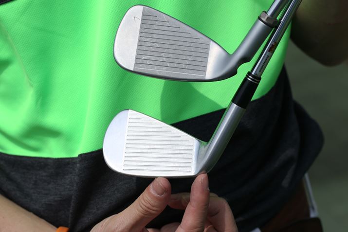こちらはテーラーメイドのカスタムメイド限定モデルで、グリップやシャフトを自分で組み合わせて注文します。トップブレードの造形などでカチッとした印象を持たせていますね。ヘッドはかなり小ぶりで、ラフからのヌケはよさそう。打つととてもニュートラルな印象があり、ドローフェードどちらの持ち球の人でも使い勝手がよさそうです。シビアなライからグッドショットを求められるような厳しい環境で戦っている人にほど、高く評価されそうなアイアンだと思います。