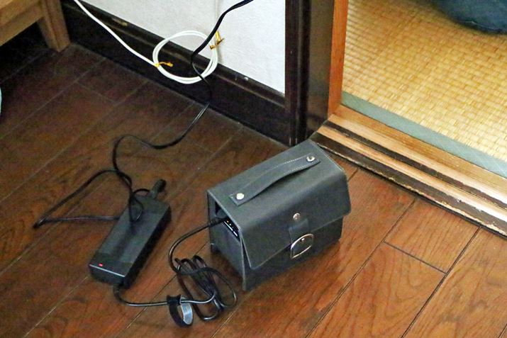 なお、バッテリーはレザーケースごと取り外して持ち運べる。付属の充電器にセットして行う。バッテリー残量ゼロの状態から満充電まで4〜5時間かかる