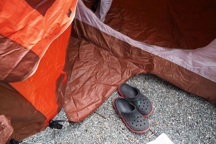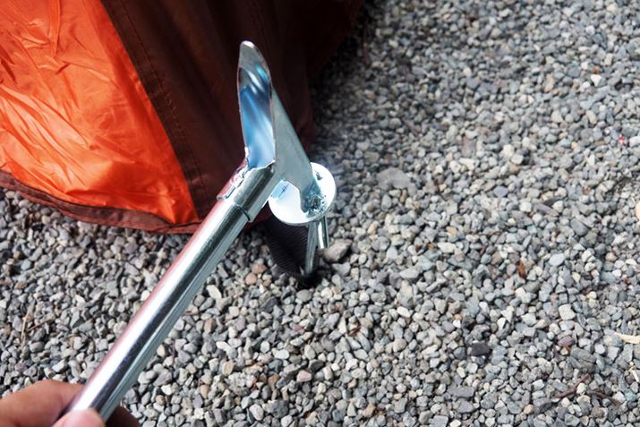 ペグダウンは付属のペグとハンマーを使いましたが、テントサイトによっては、ペグとハンマーは違うものを別途用意しておいたほうがいいかもしれません