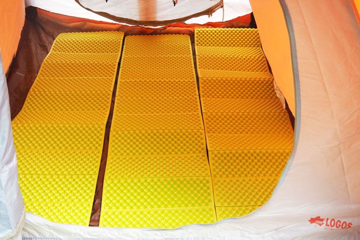 M-AHは親子3人で過ごすのに最適なサイズということで、筆者所有の51(幅)×181(長さ)cmのマット3枚を敷くことができました。大人3人だときゅうくつそうですが、大人2人、子ども1人ならイケそう