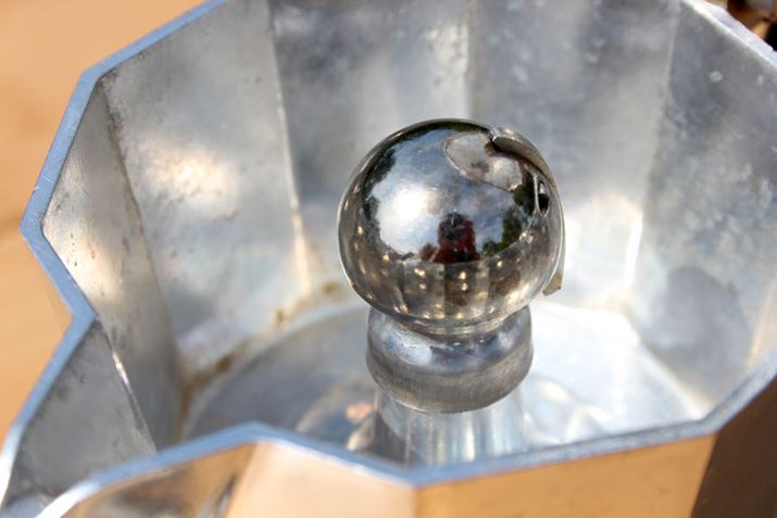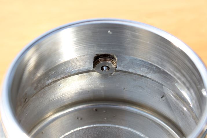 エスプレッソが抽出されるポット中央の煙突「チムニー」がないモデル。厳密にはないのではなく、ポットの縁に配置されているのですが、この構造により、ポット内が非常に洗浄しやすくなります。