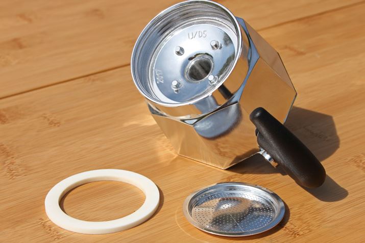なお、購入したマキネッタでエスプレッソを淹れると、抽出したエスプレッソが金気臭くなるので、最初は抽出を2〜3回ほど繰り返し、淹れたエスプレッソは飲まずに捨てたほうがいいでしょう。