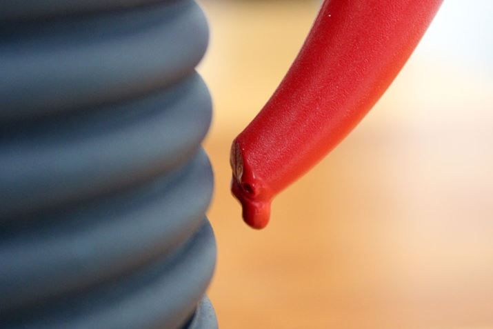 コンロに載せてから火をつけたため、溶けてしまった筆者所有のマキネッタの取っ手。数妙でも溶けてしまうので、着火と載せる順序は間違えないほうがいいでしょう