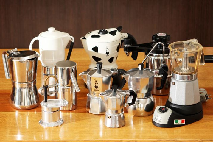 冒頭でも紹介したとおり、マキネッタにはいろいろな形状や仕組みを備えたモデルがあります。このちょっとしたギミックの違いがマキネッタのおもしろいところ。何を隠そう、筆者もこれに魅せられてマキネッタを収集しているコレクターだったりします。そんな魅惑のマキネッタをタイプ別に紹介!