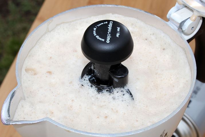 サーバーに牛乳を入れて抽出することで、カプチーノを淹れることができるマキネッタ。スチームを噴出して牛乳をきめ細かく泡立ててくれます。