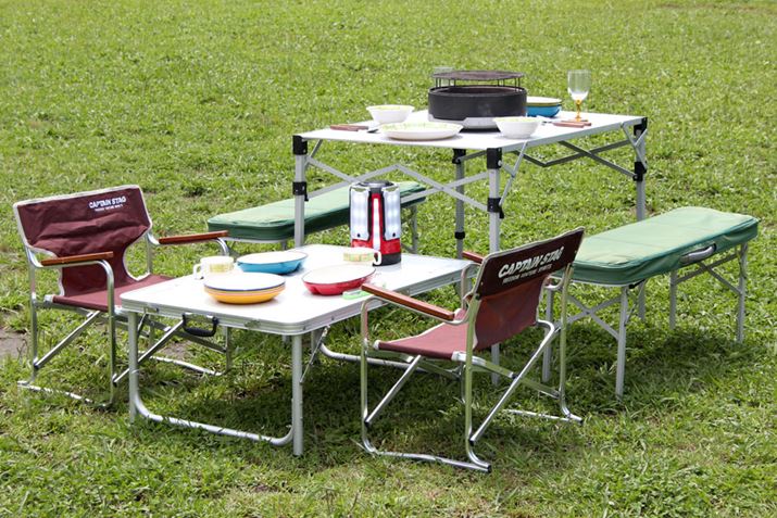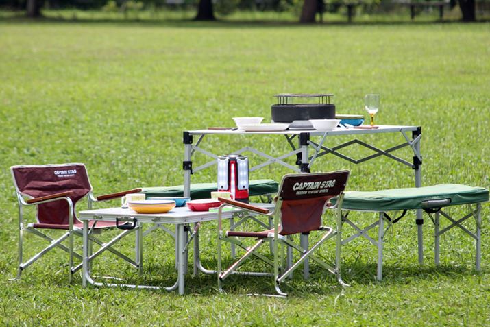 上の写真のように、ハイブリッドスタイルでBBQを行い、子どもはロースタイルのほうに座らせておけば、調理で忙しくて目が行き届かない時にも安心です。ローススタイルはくつろぐには最適ですが、座ったり立ったりの作業が多い時には、ハイスタイルのほうが大人は動きやすいもの。大人用と子ども用の2セット準備するのは荷物が増えてめんどうそうに思われるかもしれませんが、ハイスタイルのテーブルとチェアをオールインワンタイプにしてしまえば、テーブルの中にチェアを収納できるので、持ち運びにもそれほど苦労はしないはずです。