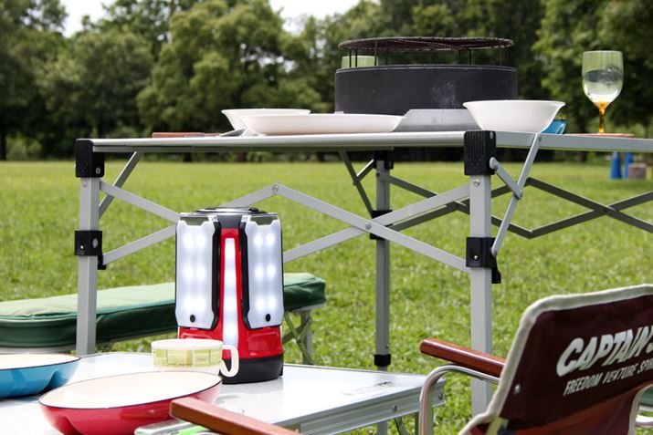キャンプではサイト全体を照らす大きなランタンのほかに、テーブルの上を照らすテーブルランタンも用意しますが、子どもが触っても安全なLEDランタンを選びましょう。LEDなら、風で倒れてしまっても物に火が燃え移ったり、タープなどの生地を溶かしたりする恐れもありません。