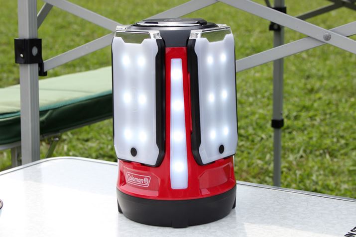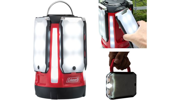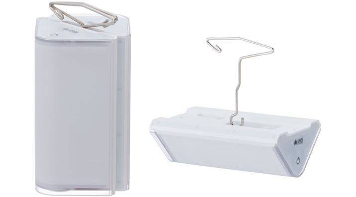 4面の発光パネルはそれぞれ取り外しができるので、懐中電灯のように持ち歩けるほか、背面のスタンドで自立させることも可能。明るさは3段階で調整でき、USBポートからスマートフォンなどの充電もできます。