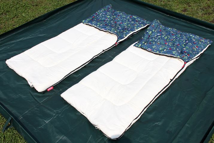 ワイドシュラフを分割して2個のシュラフにできるタイプは、子どもが大きくなっても使えるので便利(写真は、コールマン「アドベンチャースリーピングバッグ/C0」)