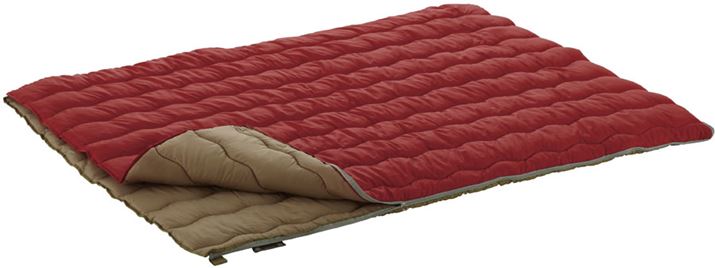 封筒型なので、家の布団のような感覚で使えます。敷き布団とかけ布団に該当する上下のパーツを切り離せば、1人用シュラフとしても使用可。快適温度は0℃以上なので、秋冬のキャンプにもうってつけです。洗濯機での洗濯にも対応。