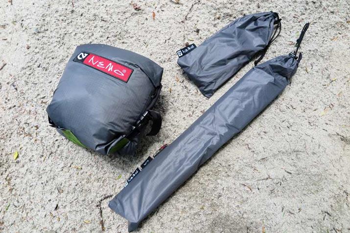 先に述べたように、リニューアルされたタニ 2Pの最小重量は1.18kg。最初期の2012年モデルは約1.5kgなので、驚くべきことに300g以上の軽量化が実現している。使用生地を15デニールの極薄にしたことが、その大きな要因のひとつだ。