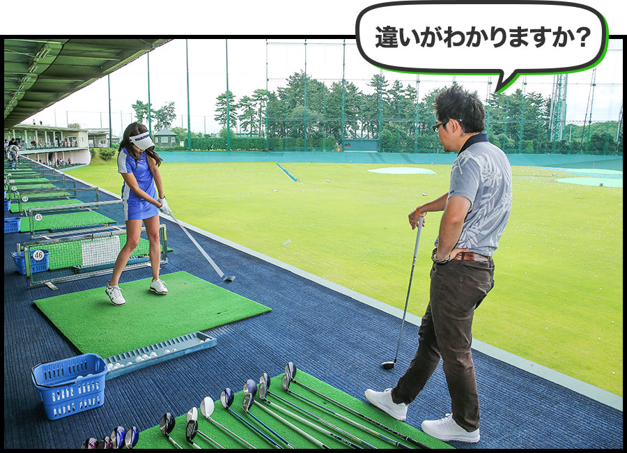 なつみ どれどれ……? あ、持った感じ自分のUTよりだいぶ短い! 長さの違いは私でもはっきりわかりました。かなりアイアンっぽくて、打ちやすいです! しかも飛んでるし……笑 これ、いいです!