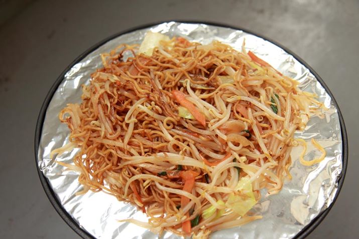 円形の小型BBQコンロで「LOGOS 焼きそばシート」を使用。円形の鉄板は特に種類が少ないため、このように焼き網を「鉄板化」できるのはありがたいものです