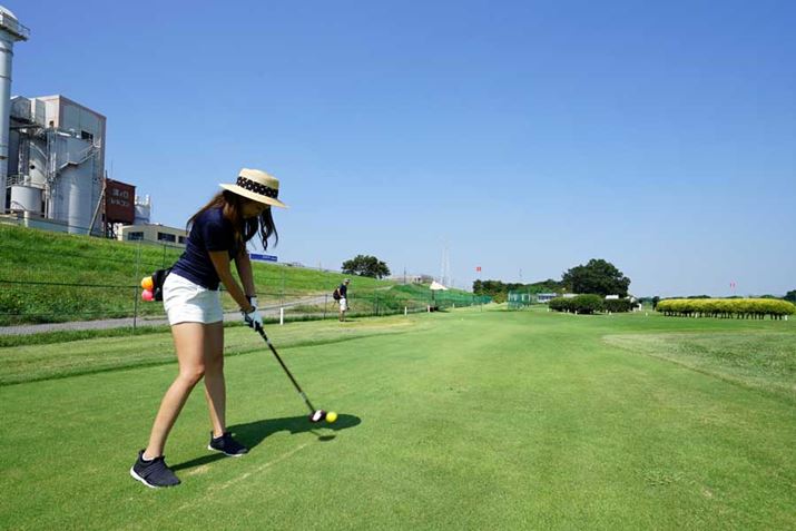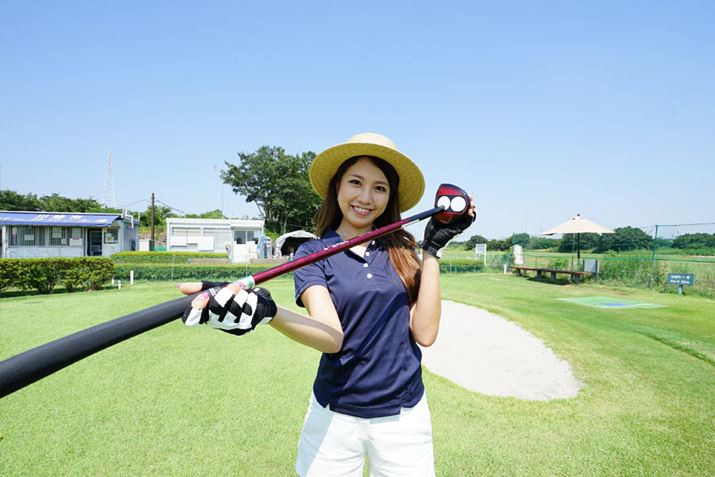 なつみちゃんのナイスショット!ちゃんと当たったときは爽快感があり、気持ちいいですよ〜。打感もゴルフとは違った気持ちよさがあります