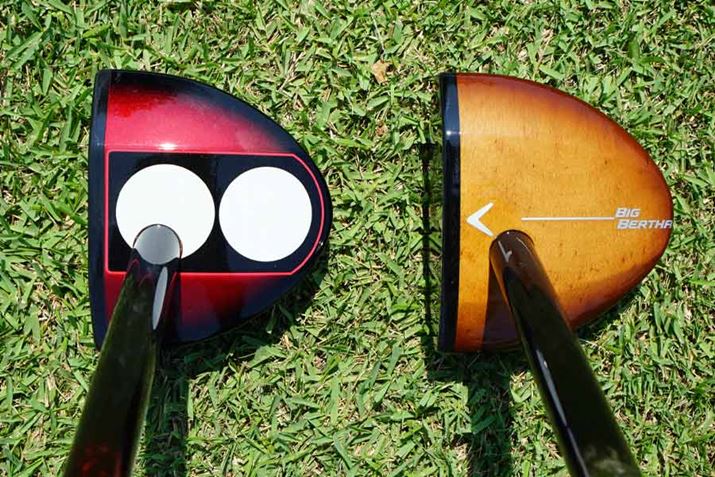 キャロウェイ名物の「2-BALL」モデル(左)に加え、往年のパーシモンを思わせる木の風合いがきれいな「BIG BERTHA」(右)をお借りしました