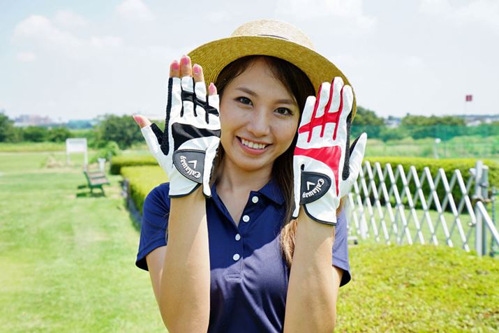 キャロウェイのパークゴルフ専用グローブ。女性向けに指先がカットされたモデルもあります。個人的感想としてゴルフ用グローブより若干厚めに作られていましたね。グリップが太いせいでしょうか?