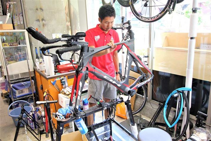 牧野 それはちょっと着てみたいな〜。ところで、お店に置いてある自転車もちょっと変わった形をしていますが、これもトライアスロン用の自転車なんですか?