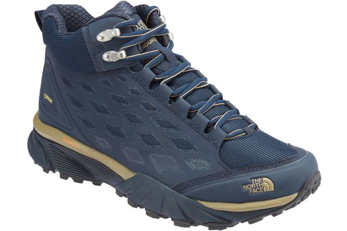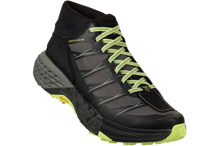 もともとランニング向けのシューズを主体としたメーカーだけに、トレイルランニングシューズのミッドカットバージョン的な存在であり、スピーディーな行動を可能にする軽量タイプ。アウトソールとミッドソールは合わせて5cm近くも厚みがあって、驚くべき弾力性を持ち、まさに跳ねるような歩行感で膝への負担を軽減してくれる。このソールは幅も広く、足が斜めに接地した時でもしっかりと体を支えてくれる。