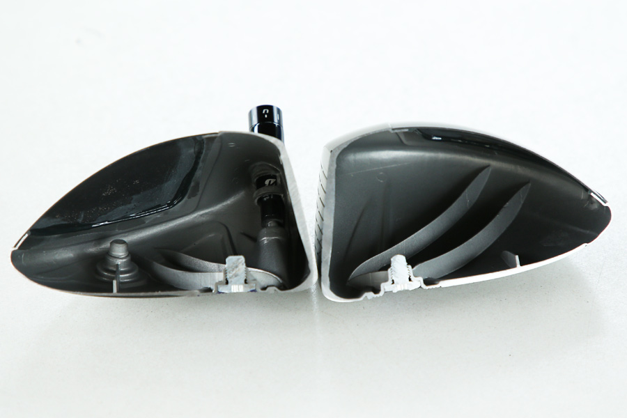 ヘッド内部。ソールに2本の襞(ひだ)のようなものがありますが、これはサウンドリブといって打音を調整するためのもの。性能だけでなく官能的な部分までしっかり設計されています