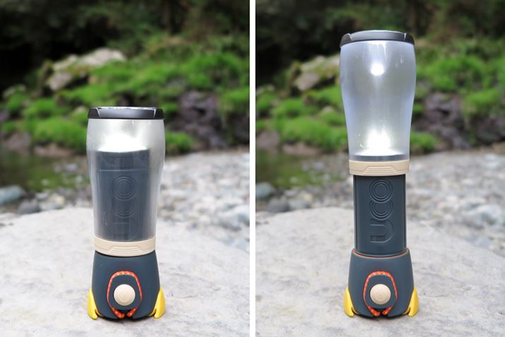 フラッシュライト(左)とランタン(右)の高さの差は5.7cm。もっとも長い状態でも、500mlのペットボトルをわずかに細身にしたくらいである