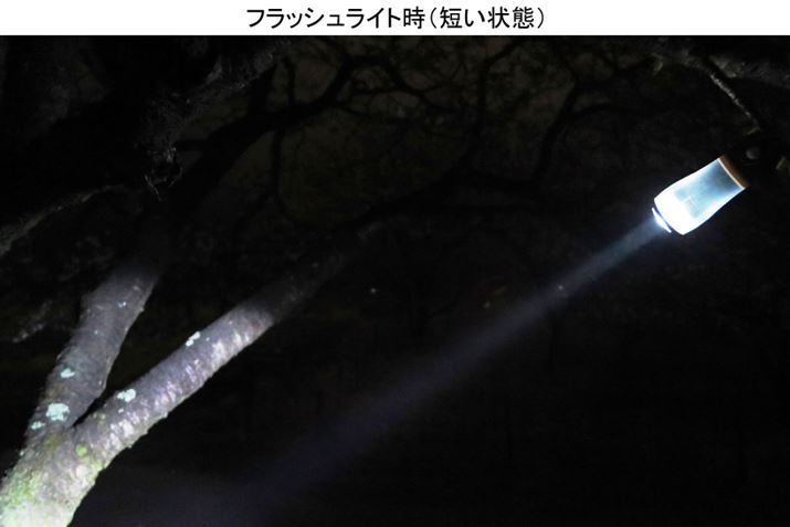 主にフラッシュライトとして使用する時の状態ではあるが、ピンポイントでどこかを明るくしたい際には、スポットライト的ランタンとしても使える