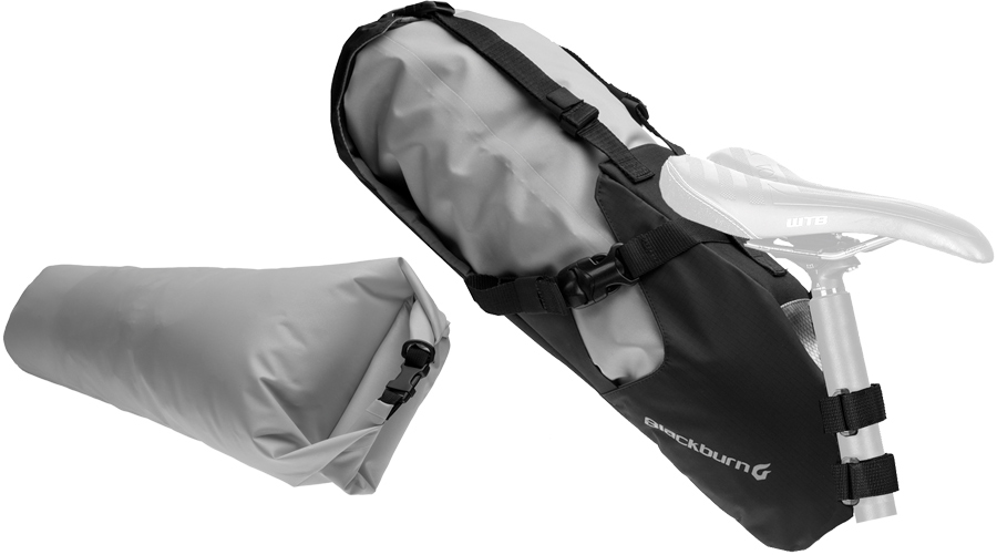 裂傷や伸びに強く、ヨットのセイルなどに使われる堅牢な素材は、4層構造でありながら軽量で高い防水性を持つ。シートポストとサドルレールにベルクロを固定するだけなので着脱は簡単だが、固定するストラップの数が多いため、ライド中、振動で荷物が振られることも少ない。また、バッグ上部にはウエアや小物などを挟み込めるゴムベルトも装備されており、使い勝手も上々だ。