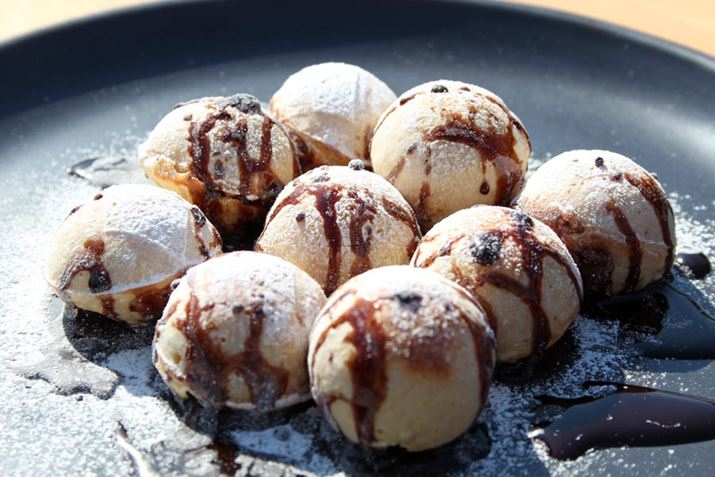 最後は、「えくぼプレート」を使ってみましょう。ネーミングはかわいい感じですが、要はたこ焼きプレート。たこ焼きやアヒージョなどのメニューが思い浮かびますが、今回作るのは“ひと口ホットケーキ”です。ホットケーキミックスをくぼみに流し込み、たこ焼きと同じように竹串でくるりとひっくり返すだけで完成!