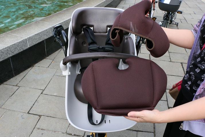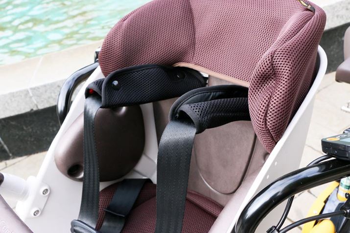 パナソニックがこれまで展開してきた子乗せタイプの電動アシスト自転車は、チャイルドシートも自社で開発したものを搭載していたが、もっと快適で安全なモデルを作りたいという思いから、ベビー用品メーカー「コンビ」に協力依頼。コンビのベビーカーにも使用されている衝撃吸収素材「エッグショック」を子どもの頭部を包み込むように配置したチャイルドシート「クルームシート」は、まるで母親の腕の中にいるような座り心地を実現したという。もちろん、子どもの落下を防ぐベルトやガードも装備し、衝撃が加わった際にも痛くないよう工夫されている。