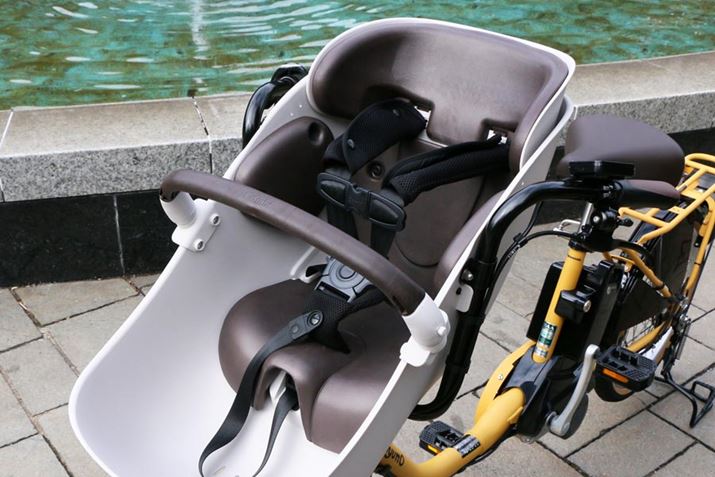 標準で装備されているチャイルドシートはフロントのみだが、リアキャリアにも取り付け可能。幼児2人乗せにも対応する