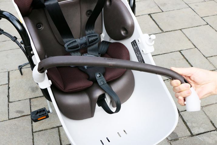 このチャイルドシートには、子どものためだけではなく、乗せる人にも役立つ工夫が満載されている。子どもの乗せ降ろしがしやすいように開口部が大きい設計とされたほか、自転車用のチャイルドシートとしては初めての機能となる立体的に持ち上がるベルトや、簡単に子どもの体にベルトをフィットさせられる機構などを搭載。常に子どもに注意を払いながら作業するうえで、スムーズに準備が完了できるのは非常にありがたい。