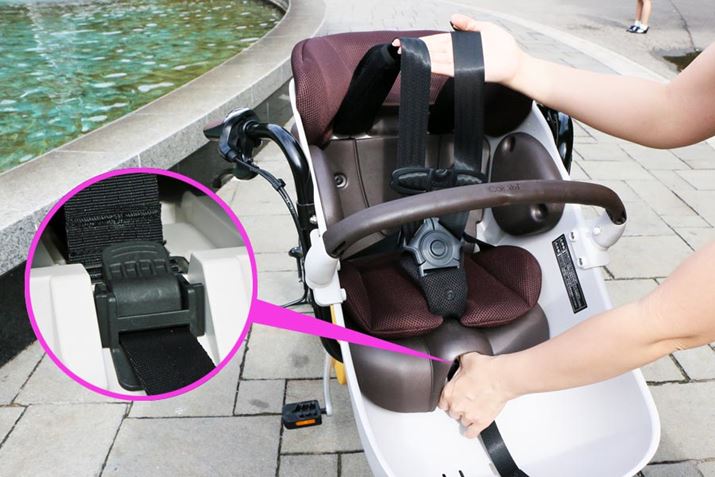 そして、子どもを乗せてベルトを締める時にはシート下から延びるベルトを引っ張ればOK!(下の動画参照)