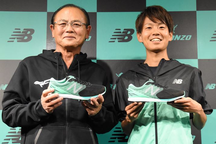 左が、三村仁司氏。2018年1月1日より、主宰の「ミムラボ」がニューバランスとグローバル・パートナーシップ契約を締結し、三村氏自身はニューバランスの専属アドバイザーに就任した。右は、2018年夏にニューバランス ジャパンとアスリート契約を締結した神野(かみの)大地選手。青山学院大学時代に数々の駅伝で区間新記録を樹立し、現在ではコニカミノルタに進んでプロランナーとして活躍中