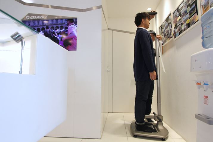 「ライトライドフィッティングシステム」で計測するのは、身長と股下。それを元に自分に最適な自転車のサイズが割り出される