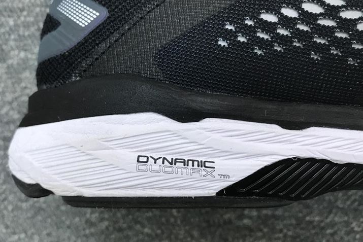 着地時に足が内方向へと過度に倒れこむオーバープロネーション。これはランニング障害の大きな原因だが、ミッドソールのヒール部内側に搭載された「ダイナミック デュオマックス」がオーバープロネーションを防止し、着地から蹴り出しまでの正しい足の動きをサポートする