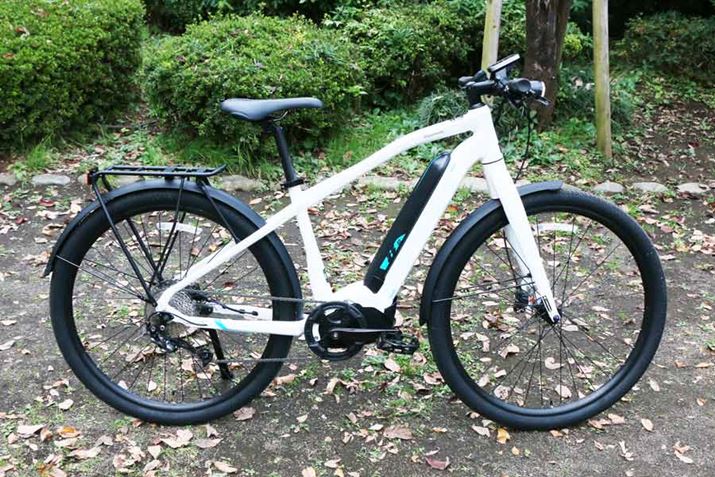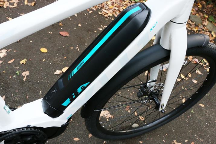 クロスバイクタイプのe-Bikeはいろいろなメーカーからリリースされているが、その設計は、普通のクロスバイクのフレームにアシストユニットを搭載したか、ロードバイクタイプ(e-Bike)のフレームやアシストユニットを使っているモデルが大半。そんな中、今回紹介する「XU1」は、同社のマウンテンバイクタイプのe-Bike(XM1、XM2)のフレームとアシストユニットを共用しているのが特徴だ。クロスバイクはもともと、マウンテンバイクのフレームにロードバイクのホイールを履かせて両者のいいとこ取りを狙って作られたのがルーツであるため、XU1は正しくそのコンセプトを受け継いでいるといえるだろう。くわえて、マウンテンバイクのフレームだからこそできる、700×50Cというかなり太いタイヤを装備しているのもポイント。一般的に自転車は、細いタイヤのほうが抵抗力が少なく、軽快さにすぐれ、長距離走行にも向いているが、電動アシスト自転車の場合、アシスト力があるので発進時やスピードに乗るまでの間にかかる足への負担はそれほど問題ではない。ゆえに、クロスバイクのような街乗り中心のタイプなら、太めのタイヤはデメリットにはならず、安定感が増す分、初心者にはやさしく、段差の多い街中での走行に適する。そんな設計を採用しているのがXU1なのだ。さらに、e-Bikeとしてはめずらしい、フェンダー(泥よけ)やキャリアも備えられており、街乗りや通勤用途としてうってつけなモデルといえる。