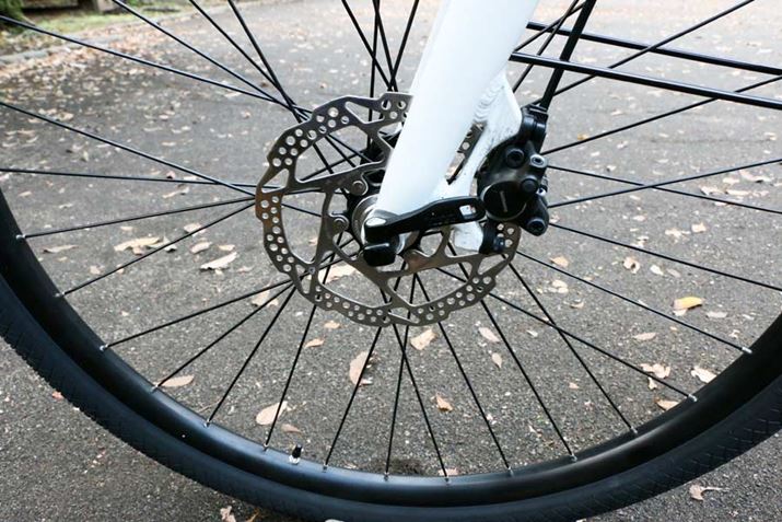 ブレーキには制動力が高く、少ない力でもコントロールが容易な油圧式のディスクブレーキを採用しているが、ホイールの固定方法は、剛性を重視するスルーアクスル式ではなく、一般的なクイックリリース式となっている。ディスク径は前後とも160mm