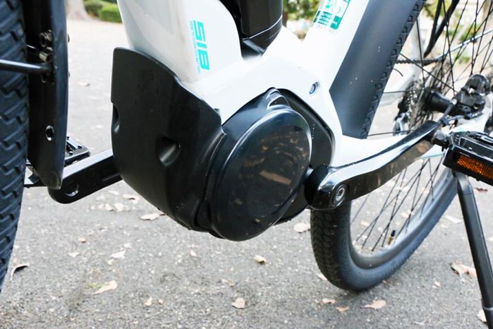 車体の中央に装備されたモーターユニットは、クランク(ペダルが付いているアームの部分)軸に直接アシスト力を加えるダイレクトドライブ機構。マウンテンバイクタイプ「XM1」と同じものが採用されている