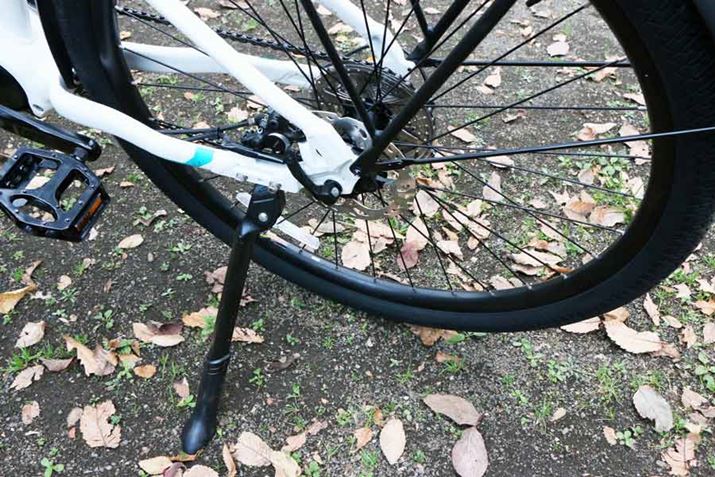 スポーツタイプの自転車には装備されていないことも多いサイドスタンドを搭載。安定感があるので、このまま東京タワーを観光しに行こう!(盗難防止のため、鍵の準備はお忘れなく)