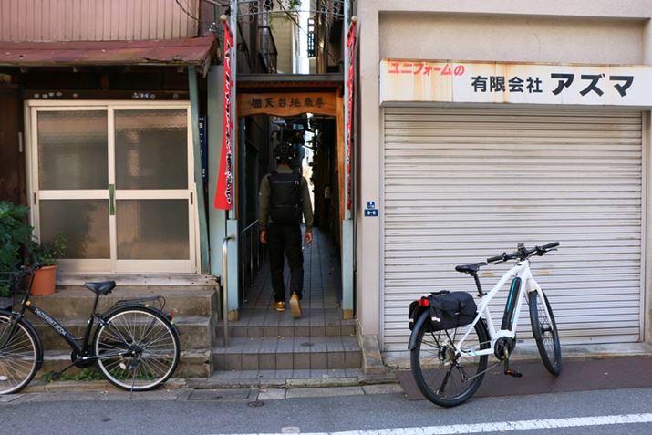 勝鬨橋を渡り、月島に近づくと町並みは下町っぽさが増してくる。細い路地も多く、自転車で走るのにうってつけ。気分に合わせて速度を変え、ゆっくりとまわりを見ながら走り、気になったところで止まって観光できる自由度の高さは自転車のメリットだ。
