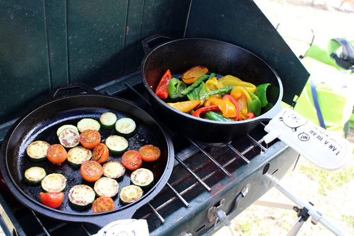 アウトドア用の鍋ではなく愛用のフライパンを持参。鉄製で高温にも強くさびず長く使える優れもの