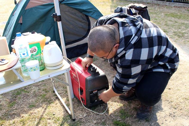 それって電気がないと使えないでしょと思ったら、なんと発電機を持参していたのである。この魔法の箱さえあれば、家庭にあるすべての家電がアウトドアで使えるようになると気づかされた瞬間だ。