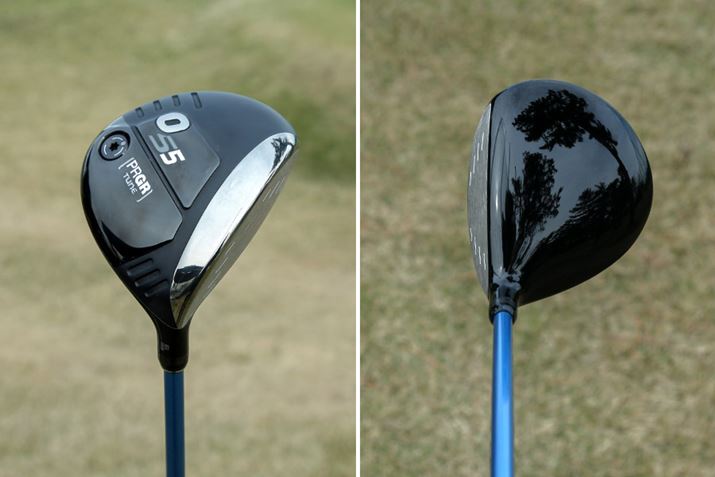 試打ヘッドはロフト11度。ヘッドスピード42m/s程度のイメージで打つと高さが自然と出ましたね。打ち出し角が高いのに初速は速めでスピンもやや少なめな感じ。安定してキャリーが出せて、まずまずのランが出る効率のよさそうな弾道でした。写真を見てお気づきかもしれませんが、この05にはロフト表記がありません。01や02にはあるのですが、ロフトが大きめのモデルにいまだ抵抗を持つゴルファーがいるのに配慮してかはわかりませんが、ロフトは違う表記で表しています。それはどこかというとちょっとわかりにくいかもしれませんが、05のロゴの右下にドットが2つあるのがわかりますでしょうか。このドットの数がロフトを表しており、ドット1つが10度、2つが11度です。こういった気配りというかちょっとした違いが所有感を刺激しますよね!