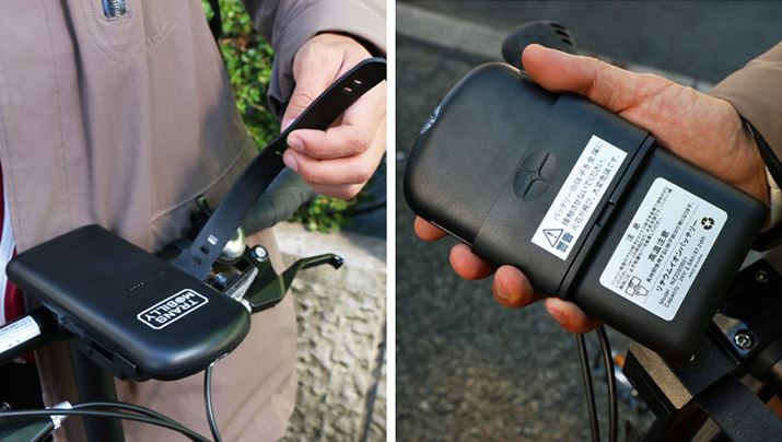 モバイルバッテリーで走る電動アシスト自転車というコンセプトを聞いた時、「ちゃんと走るのか?」という疑問が真っ先に頭に浮かんだ。正直なところ、ギミック押しだろう思っていたのだが、実際に乗ってみると意外にきちんと設計されている! 走行テストで試した登り坂は、電動アシスト自転車でも登り切れない車種もあるほどの傾斜だったにもかかわらず、難なくクリアできてしまった。ネックとなるとすれば、航続距離が短いことだろうか。ぶっちゃけ、バッテリー容量が少なくてもアシストのパワーを抑えめにすれば航続距離は伸ばせるのだが、ULTRA LIGHT E-BIKE TRANS MOBILLYは適正なアシスト力を担保することをおろそかにせず、結果、航続距離約10〜12kmとしている。数値だけ見ると物足りなく感じるかもしれないが、街乗りや旅行先などで、さほど長い距離を走らないのであれば、このくらいの航続距離でも十分。不安なら、予備のバッテリーを持って行けばいいだけと、割り切っているところもユニークだし、旅先に持って行く自転車としてかなり有力だ。