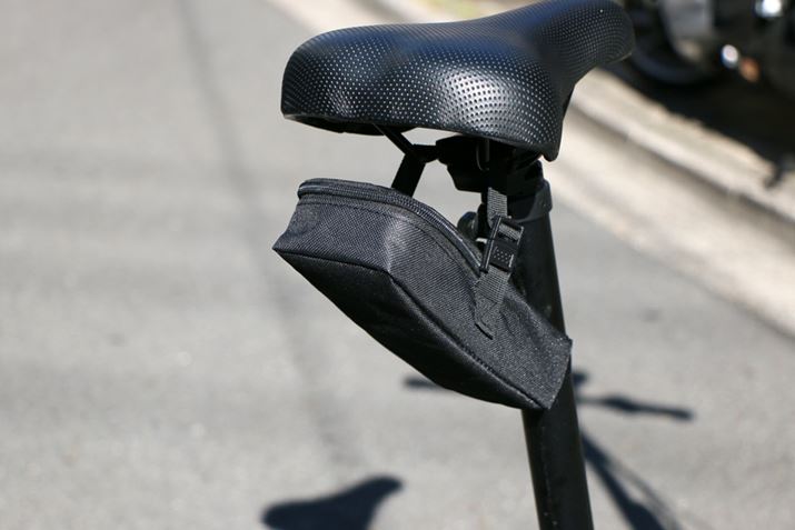 付属のサドルポーチに予備バッテリーを入れておくのもいいかも。ただし、防水仕様ではないので雨には気をつけよう