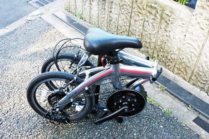 今回は16インチに試乗する。16インチモデルのサイズは1,270(全長)×540(全幅)×870〜1,000(全高)mm。アルミ製のフレームに小型のアシストユニットを搭載した車重は12.9kgという軽さを実現した