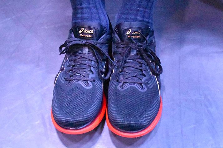 「メタライド」は、少ない力で長く走ることをコンセプトにしたランニングシューズ。「アシックススポーツ工学研究所」が約2年にわたって研究開発を行い、走行時のエネルギー消費につながると言われる足首部の過度な屈曲を抑えるように設計されている。実際、走行時に足にかかるエネルギー消費を約19%削減していることが科学的に実証されているという。