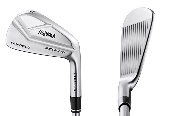 こちらが”ローズ・プロト”アイアン。7番のロフトは34度と、現代アイアンとしてはロフト多めの設定です。ローズいわく「各番手のスピンを100〜200rpm単位でコントロールできるクオリティがある」とのこと。恐るべき操作性です! 飛び方はどうなのか、早く打ってみたいですね! 写真提供:本間ゴルフ